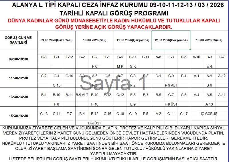 Kapalı Görüş Programına Erişmek İçin Tıklayınız