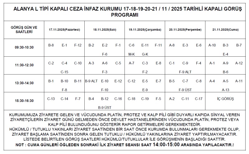 17-18-19-20-21 / 11 / 2025 TARİHLİ KAPALI GÖRÜŞ PROGRAMI